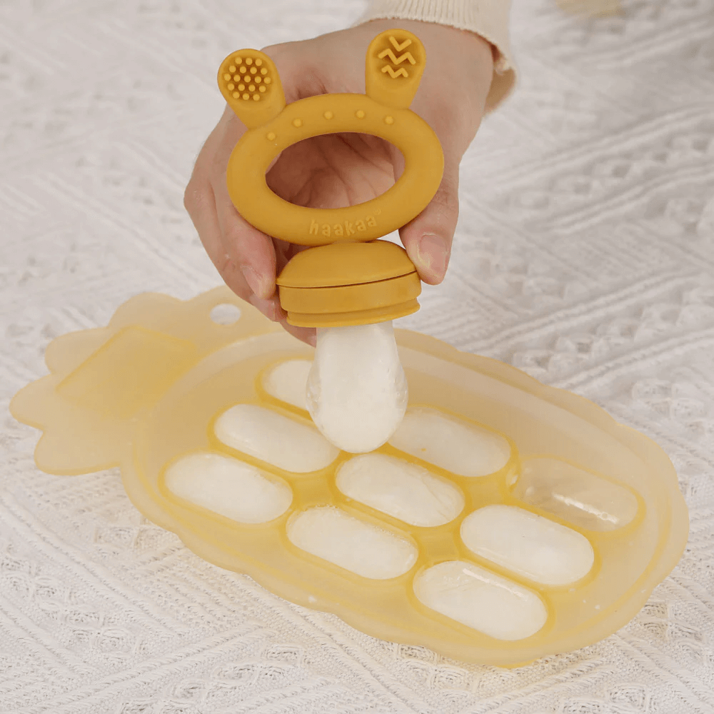 Силиконовая форма Haakaa в форме ананаса — идеальный многофункциональный аксессуар для кормления малышей. Используйте ее как отдельную тарелку для снэков, форму для варки на пару или для приготовления идеальных порций замороженного детского питания или грудного молока для ниблера.